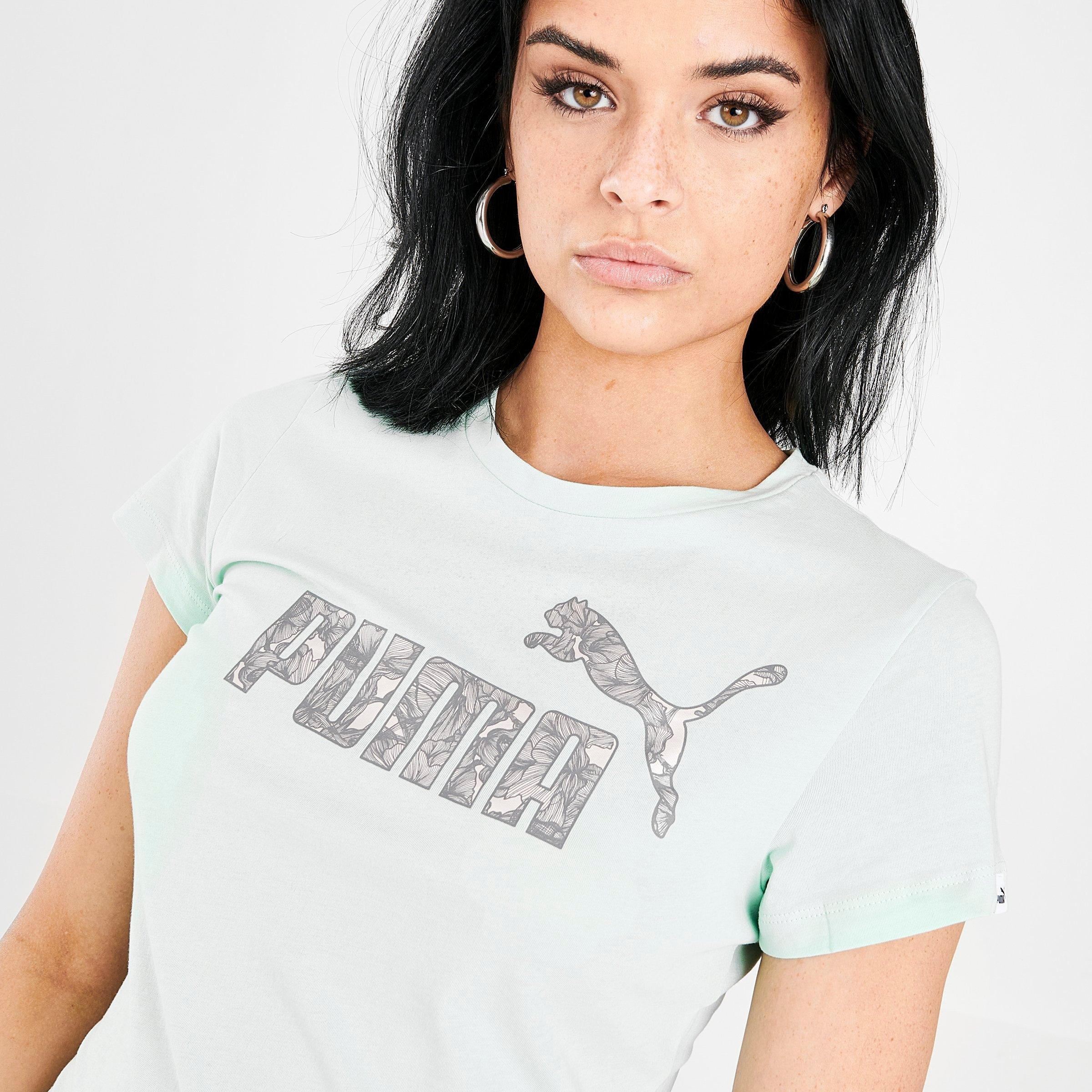 Womens T-Shirts and Tops From relaxed tanks to form-fitting crop tops PUMA t-shirts for women come in all shapes and sizes. PUMA Essentials Small Logo Womens T Shirt Regular fit. Show off your casual and sportswear style with help from our womens PUMA clothing section which features everything you need to dress head-to-toe in the iconic brand.